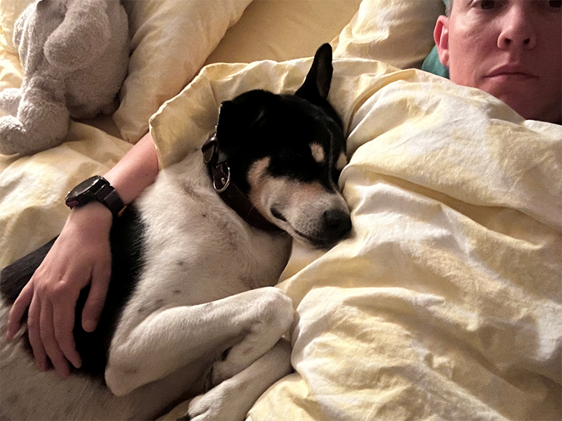 Mittlerweile ist unsere liebste Einschlafposition aneinander gekuschelt, quasi Löffelchen. 😉 Sie genießt das total und hat ein Hundeschnurren entwickelt, an dem man merkt wie wohl sie sich fühlt. Der Platz im Bett ist zwar damit sehr viel weniger geworden, aber ehrlich gesagt möchte auch ich diese Kuschelstunden nicht mehr missen!