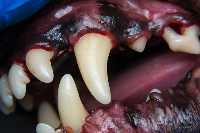 Zahnstein führt zu Zahnfleischentzündungen. Das kann zu Parodontitis führen. Bakterien greifen Zahnfleisch und Knochen an. So verlieren Hunde Zähne.